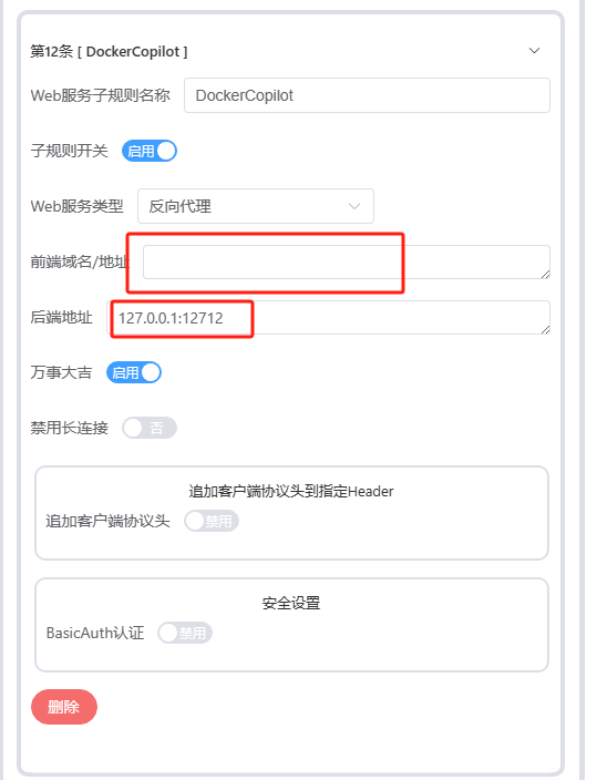 http或https;地址:填写反向代理的域名,仅须输入域名,无须端口号;