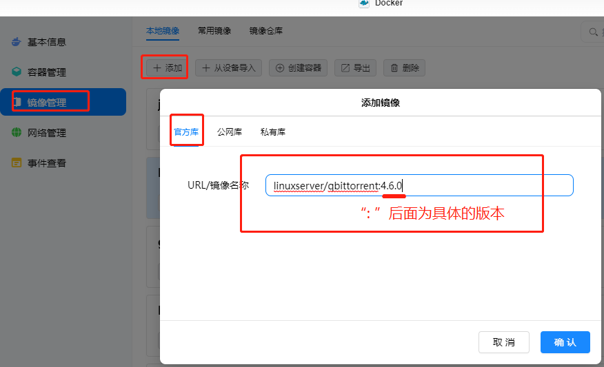 须已知镜像完整名称及版本号,版本号支持