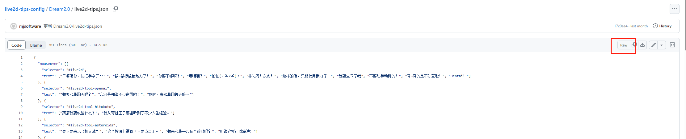 Raw按钮获取在线链接,在线地址会跟随配置修改而自动更改,前端仅需完整刷新一次网站。