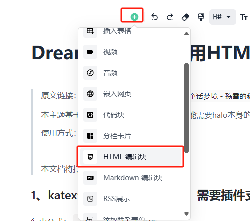 </mew-raw>Dream Plus主题使用HTML代码段插入附加功能