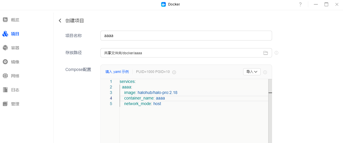 network_mode: hostaaaa:输入一个不重复的名,可与container_name一致;
