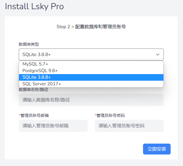 数据库路径如果为空,程序将会自动在根目录 database 文件夹中创建 database.sqlite 文件,否则请填写该数据库文件的绝对路径。