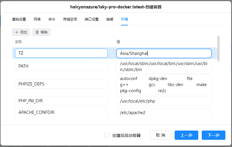 设置“TZ”,值:“Asia/Shanghai”,将时区设置到“+8”时区,即北京时间。