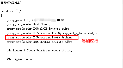 反向代理的配置文件中添加