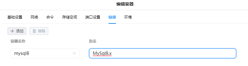 链接”设置页,需要保证当前容器以及添加进链接的容器网络模式相同且不能是”host”和无法连接网络的模式,若自行建立网络模式,则还需要保证自建网络不是无法连接网络的;经过不完全测试发现,加入链接的容器,在被使用时使用的端口为
