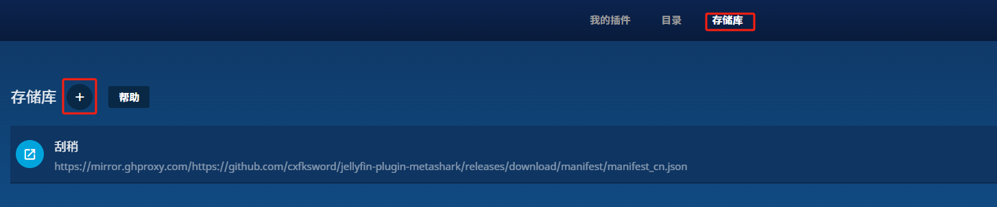 https://mirror.ghproxy.com/https://github.com/cxfksword/jellyfin-plugin-metashark/releases/download/manifest/manifest_cn.json若上述URL失效,可在插件仓库中获取最新地址: