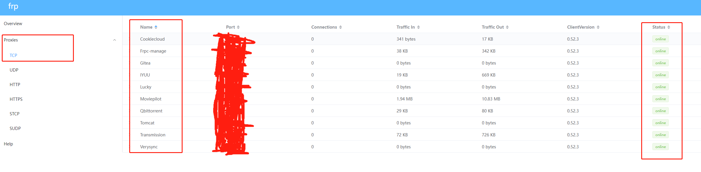 bindPort:服务端口webServer.addr:不要修改;webServer.port:Frps的web管理端口;webServer.user和webServer.password:Frps的web管理端账号和密码。