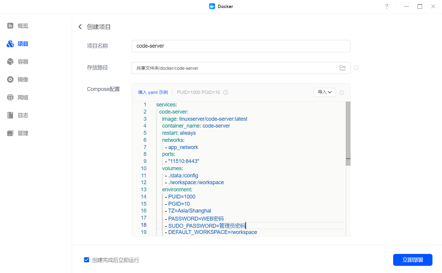 - PASSWORD=WEB密码