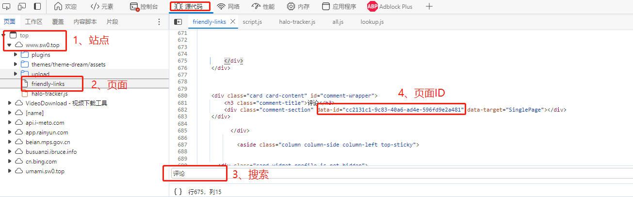 Ctrl键+F键打开搜索功能,搜索评论关键字,找到上图中相同的Html代码块;复制